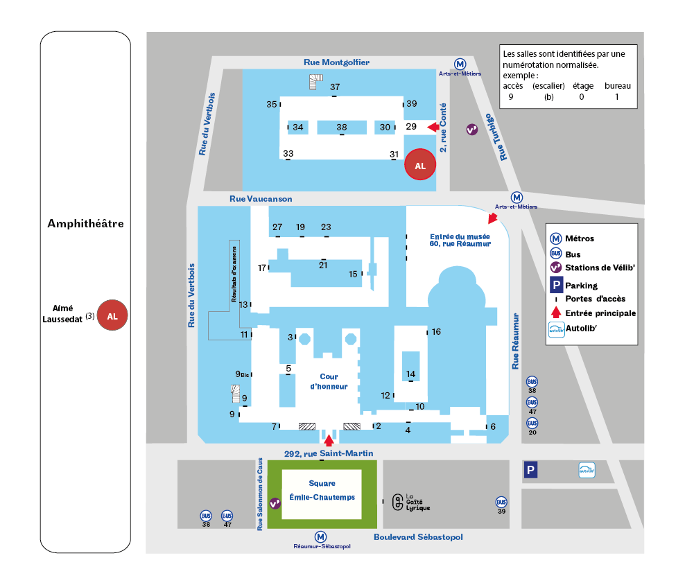 Cnam, 2 rue Conté, Amphithéâtre Laussédat (accès 31, 3ème étage)